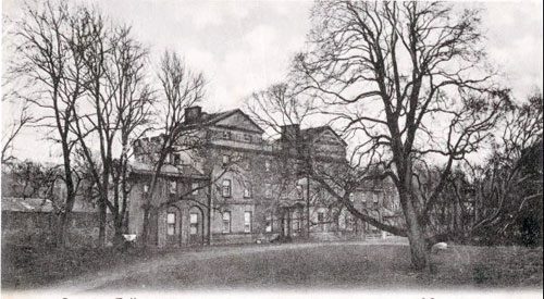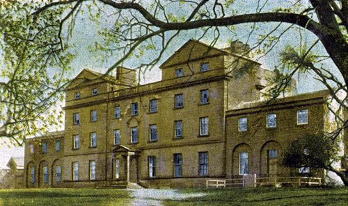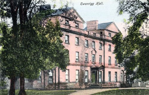 A hand-tinted image of the impressive Ewanrigg Hall from the times of the Christian family.