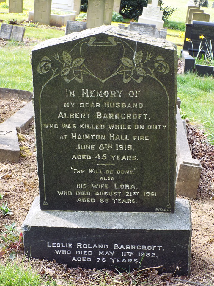 Although there were no casualties amongst its residents, a Grimsby fireman, Albert Barrcroft, was killed when he was pinned beneath half a ton of falling debris, and one of his colleagues, William Watkins, injured by the fire.