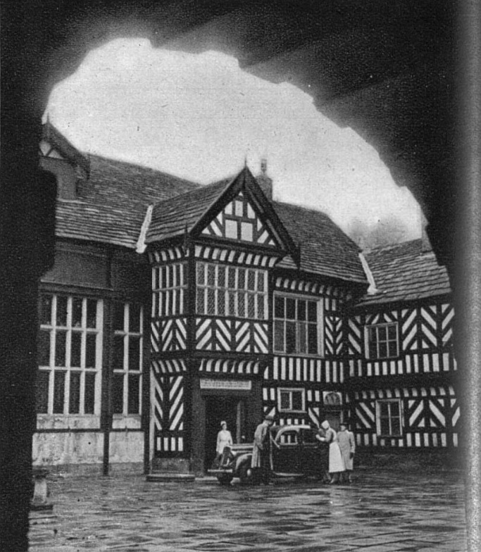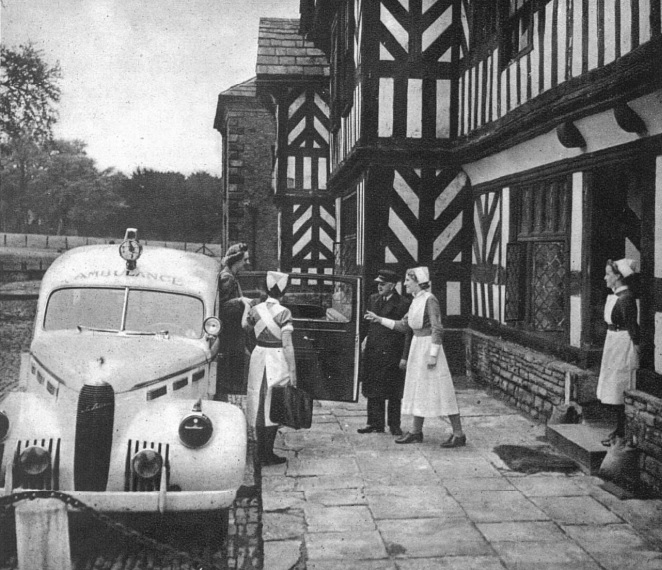 August 1942. Seeing off a patient from the Elizabethan courtyard on the eastern side of Adlington Hall. Image: The British Newspaper Archive.